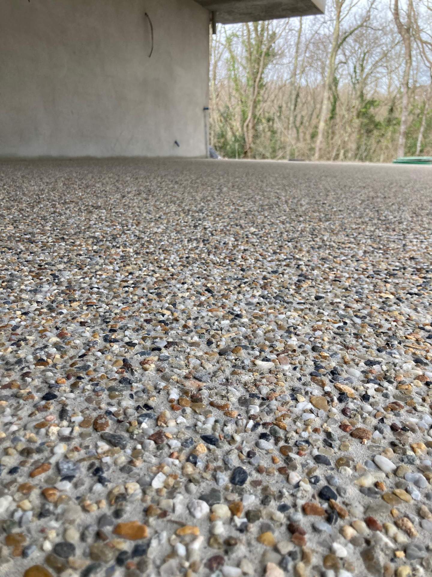 BLS TP réalise vos sols en béton désactivé, un revêtement esthétique et solide qui s’intègre parfaitement à vos aménagements.